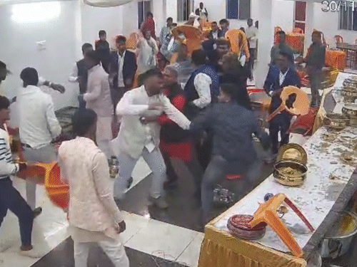बिहार में बोधगया के एक होटल में शादी समारोह में रसगुल्ले को लेकर बवाल हो गया. यहां दूल्हा और दुल्हन पक्ष के बीच जमकर मारपीट हो गई. पूरी घटना सीसीटीवी में कैद हो गई है. वीडियो में देखा जा सकता है कि किस तरह लोग एक-दूसरे पर कुर्सियों, बर्तनों से हमला कर रहे हैं. घटना के बाद दुल्हन पक्ष ने शादी से इंकार कर दिया है. दोनों परिवारों में तनाव का माहौल है.